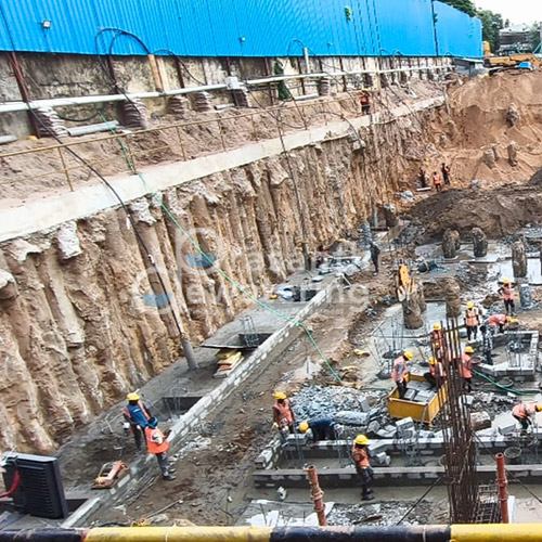 The Appaswamy Kamadhenu Residential project involved professional dewatering services designed for deep excavation. With a total perimeter of 304 meters, maintaining groundwater control was critical.