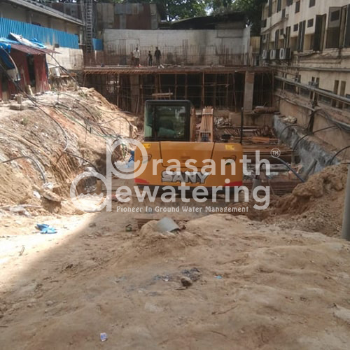 Prasanth Dewatering successfully deployed an efficient system to enable excavation up to a depth of 6 meters, ensuring dry and stable working conditions across the site. Proper monitoring and timely adjustments ensured uninterrupted progress and adherence to safety standards.