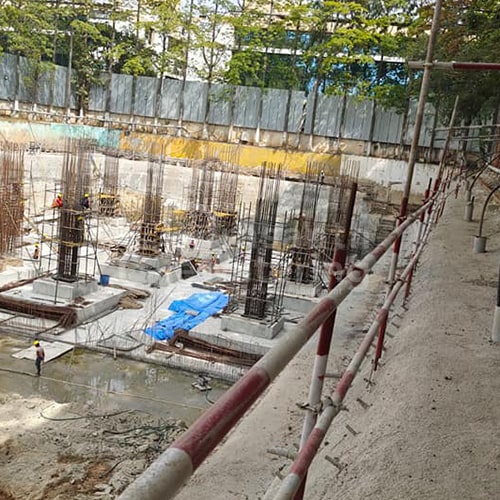 The Prestige Forum Mall project required a strategically designed dewatering solution to support large-scale deep excavation. With a total perimeter of 620 meters, effective groundwater control was critical throughout the process.